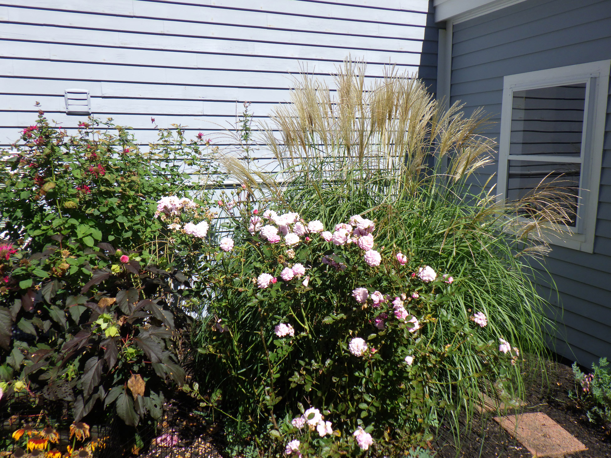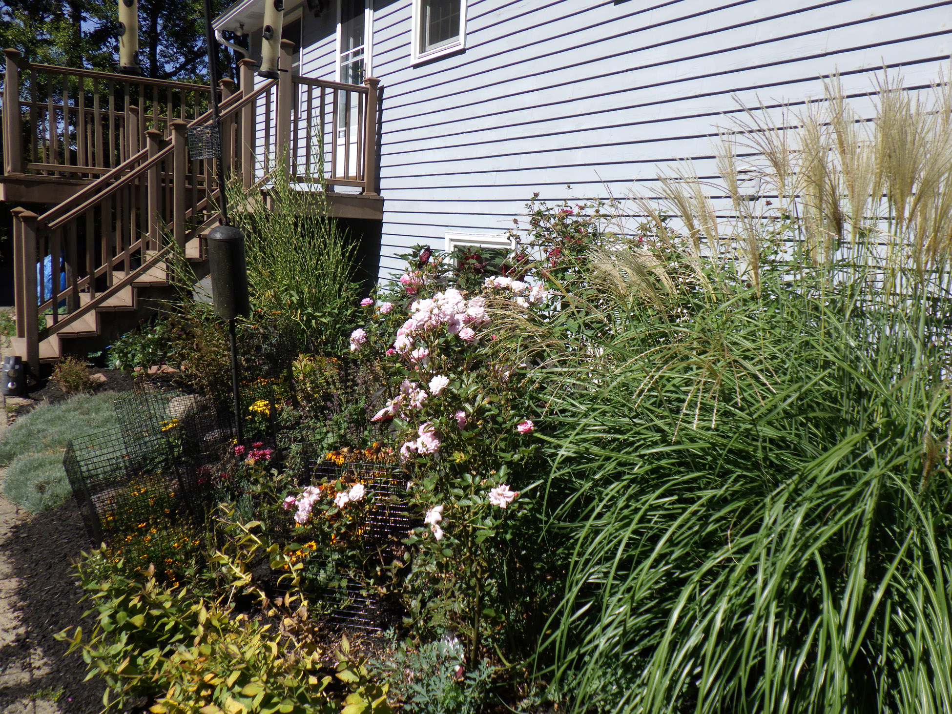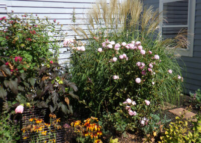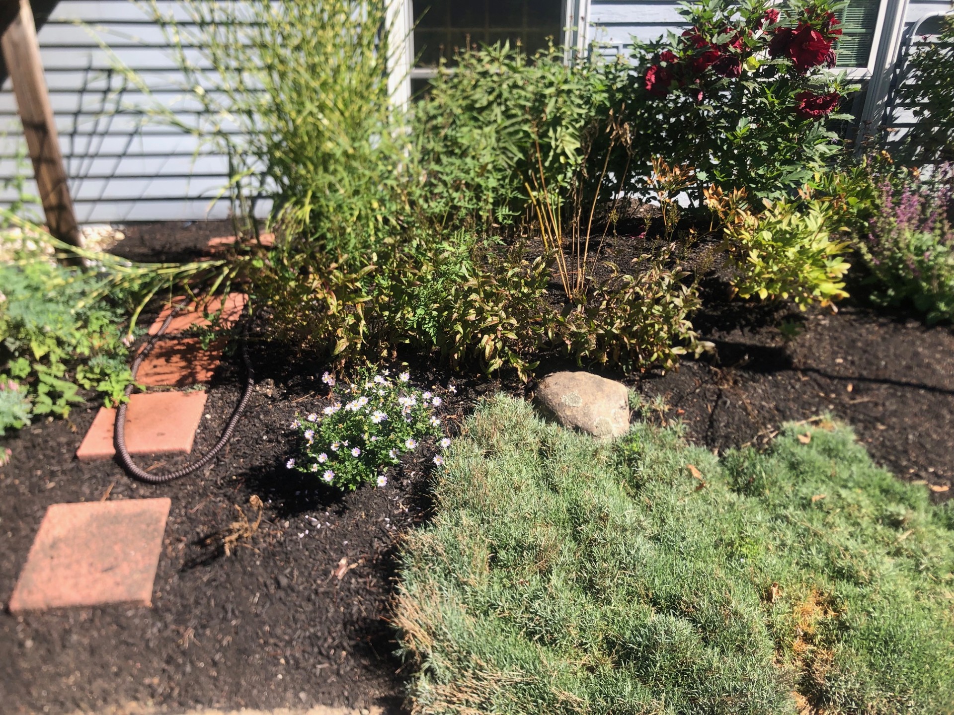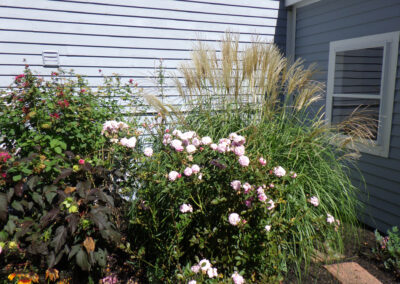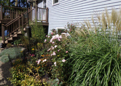 So, we refreshed the garden with a burst of summer color—Black-Eyed Susans, Coreopsis, and cone flowers in bright shades of orange, red, and yellow. These vibrant additions brought new life to the space, blending beautifully with the mature shrubs and ornamental grasses already established in the bed.