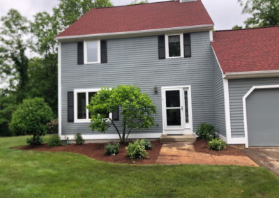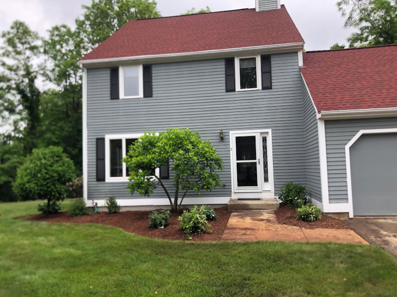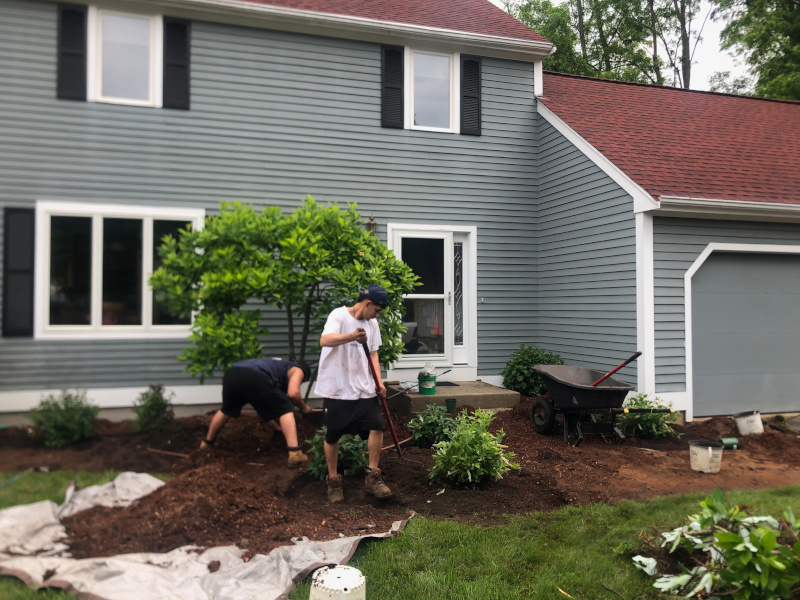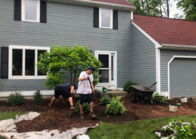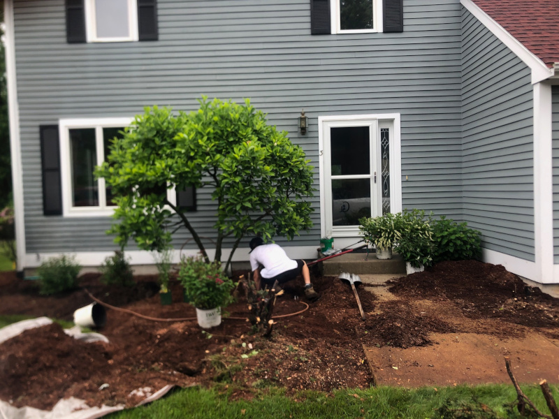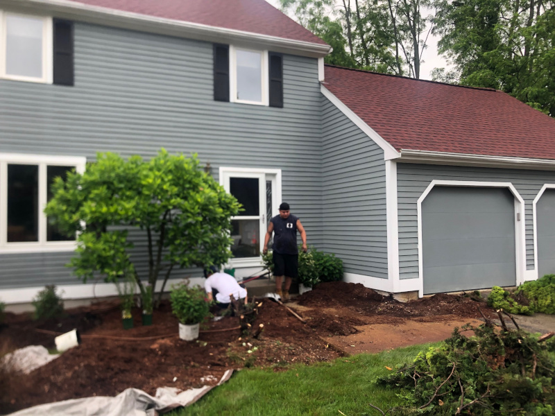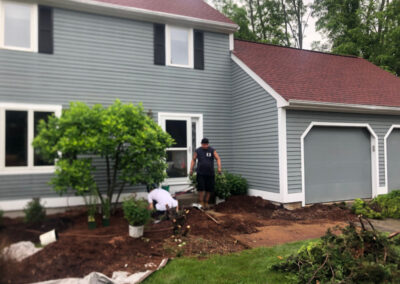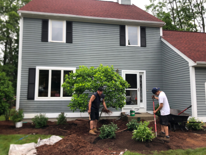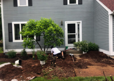 This garden install in Nashua, NH was quick. We pulled up the old irrigation and two shrubs. The Dingo made quick work of the two stumps. The 9 new shrubs will love the sunshine and new garden soil. It took us 3 hours. Greenleaf’s Garden Design is dedicated to working in tandem with nature. When there are existing gems in your yard, our goal is to create a plan to incorporate those with a gardener and certified arborist’s eye.