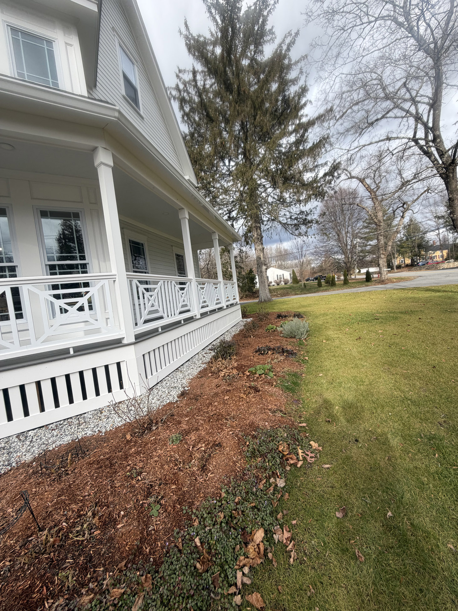 On Day 2, the drip irrigation system and 3 yards of Hemlock Mulch were installed to keep them thriving.