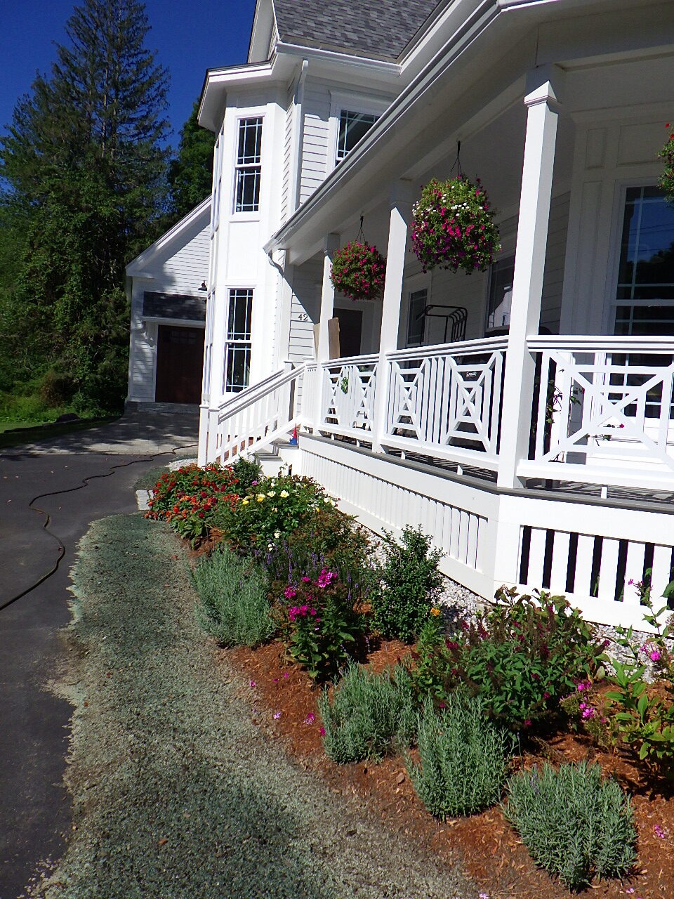 In the afternoon, the crew planted all of 15 annuals, 28 Shrubs and 100 perennials. On day two, the drip irrigation system and 3 yards of Hemlock Mulch were installed.
