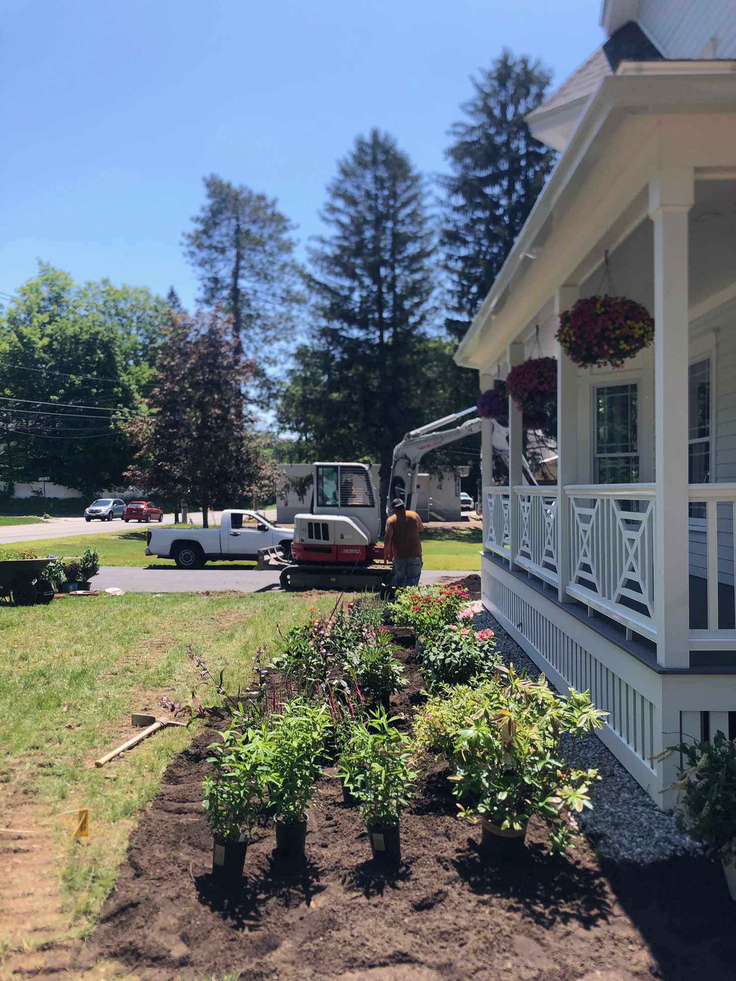 On day one the excavator dug out the old soil and replaced it with 15 yards of specialty mixed Garden Soil.