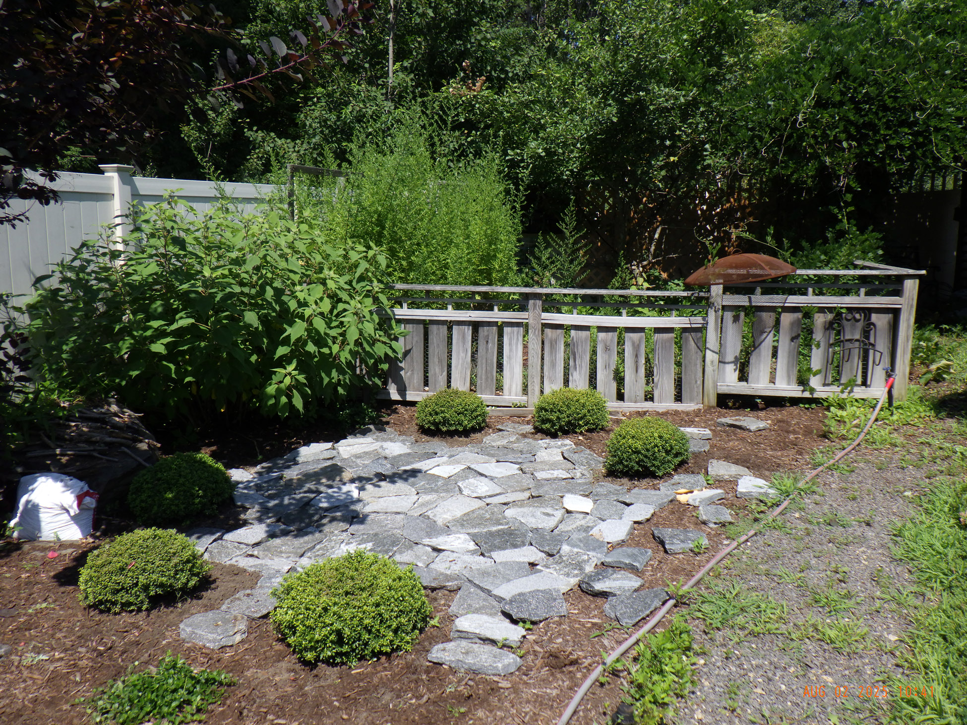 For this project in Merrimack, NH, the crew from Greenleaf’s Garden Design spent multiple days weeding, designing, and installing.