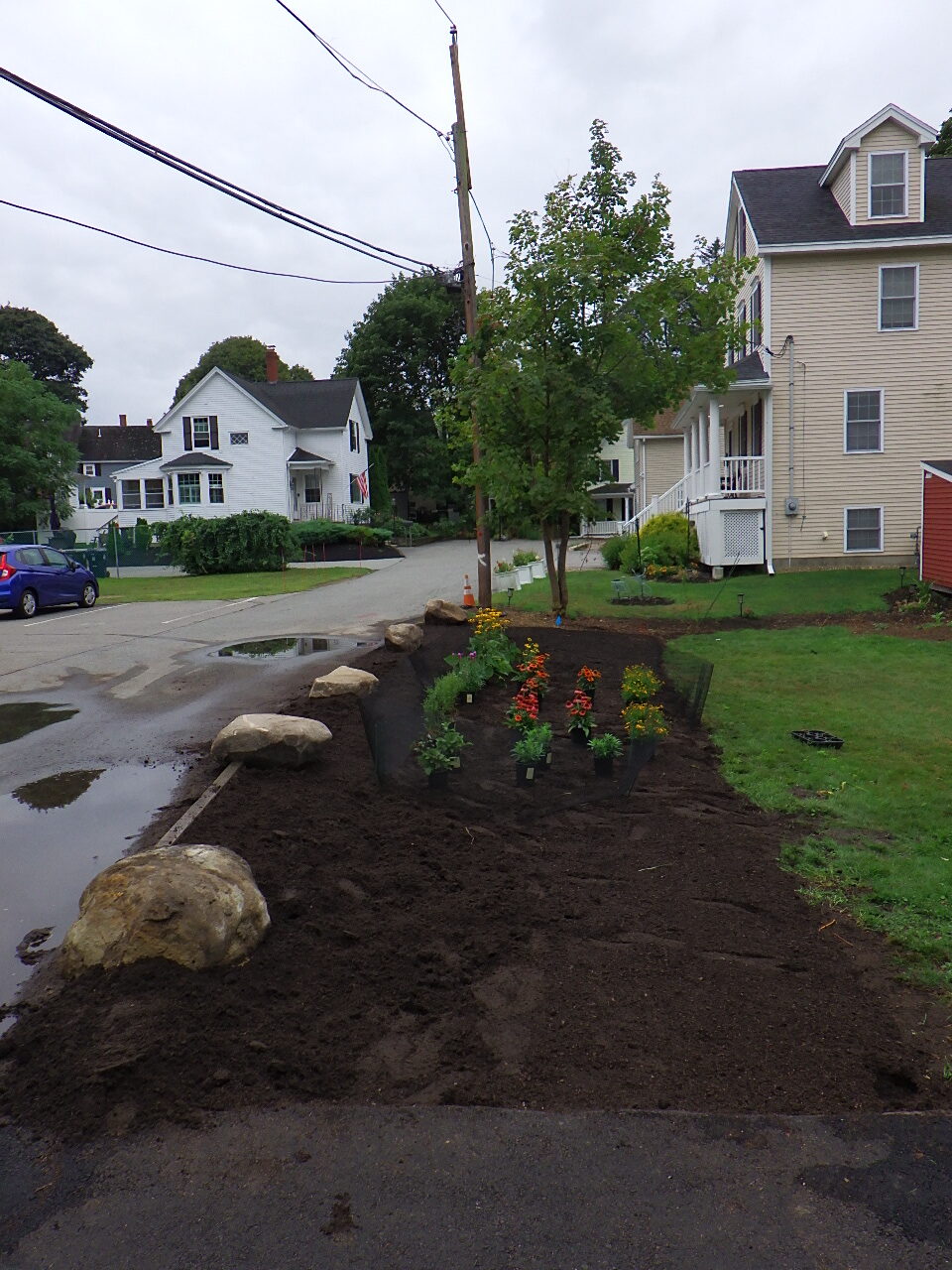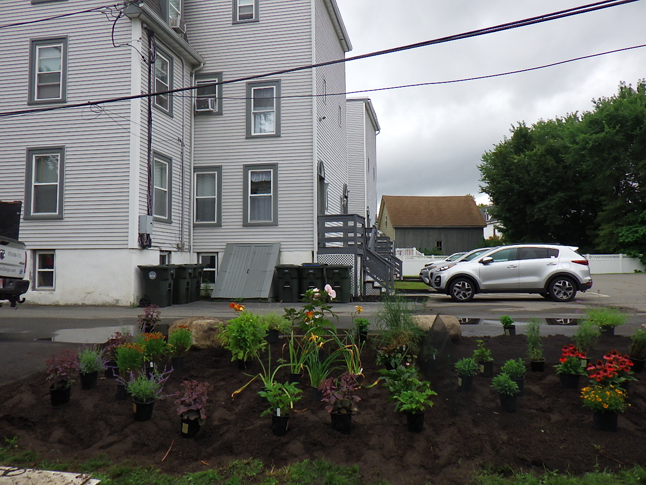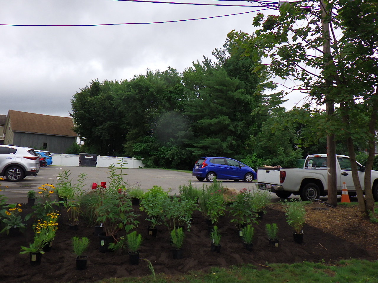 We installed 90 sun-loving perennials, carefully selected to thrive in Andover’s climate. The garden’s central focus features a breathtaking display of Coneflowers, Black-Eyed Susans, Coreopsis, and Asters. These vibrant blooms bring summer magic with their happy, colorful hues. To protect the plants from local wildlife, half of the perennials were installed with fence protection to keep bunnies at bay.
