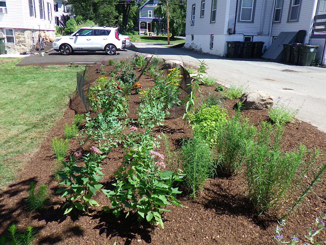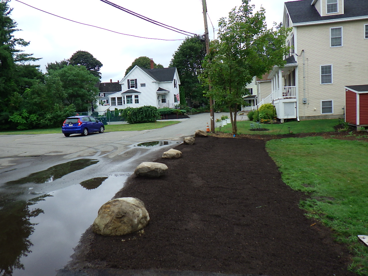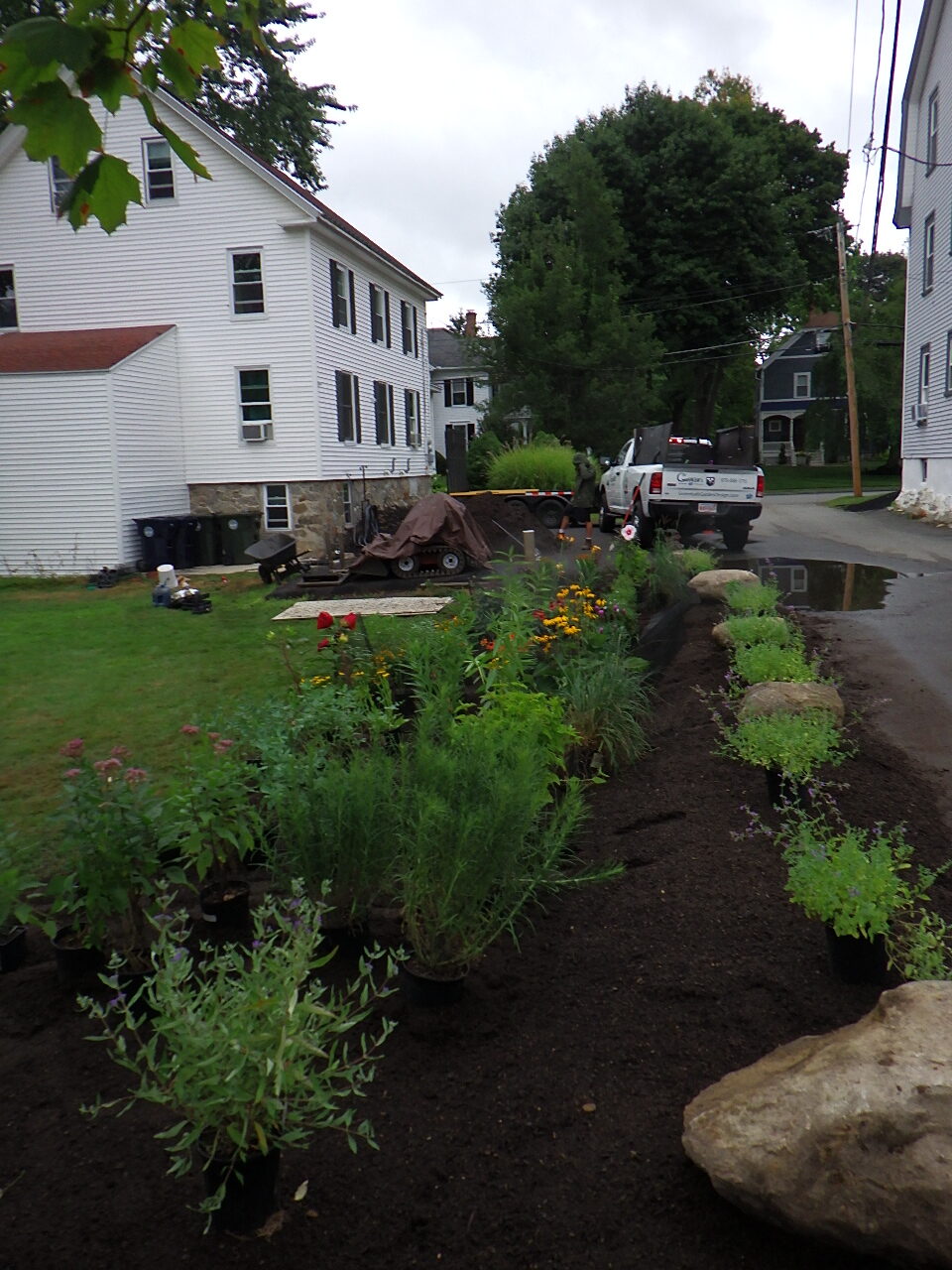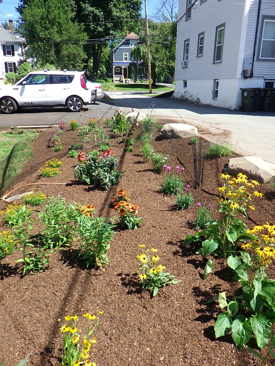 We installed 90 sun-loving perennials, carefully selected to thrive in Andover’s climate. The garden’s central focus features a breathtaking display of Coneflowers, Black-Eyed Susans, Coreopsis, and Asters. These vibrant blooms bring summer magic with their happy, colorful hues. To protect the plants from local wildlife, half of the perennials were installed with fence protection to keep bunnies at bay.