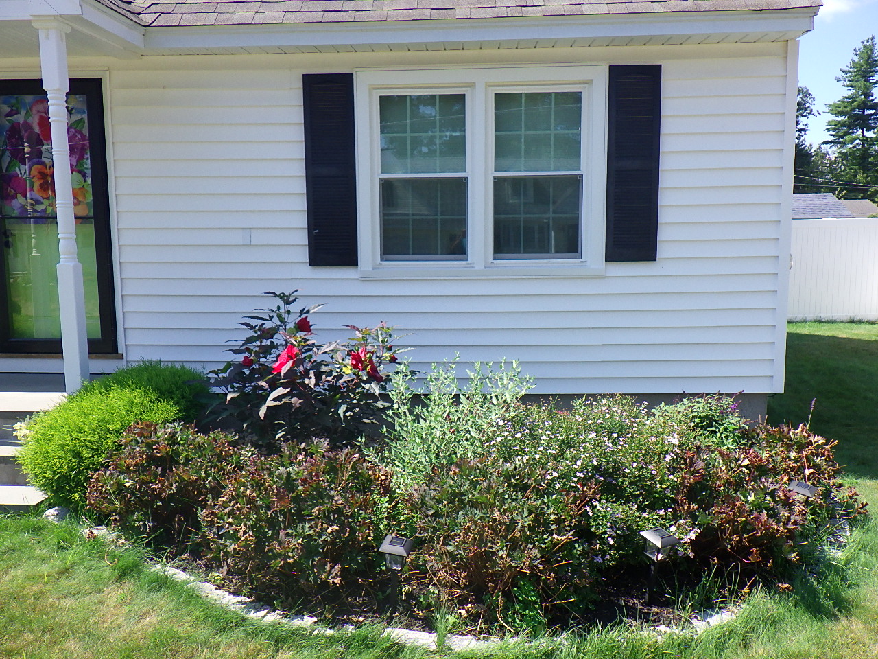 This client in Nashua, NH, met with me and she was quite happy with how I showed mastery of gardening as we walked her yard. She said, “I love U” Meaning she instantly trusted me. We brought in two yards of a soil/compost mix and planted 30 perennials. The client wanted a cobblestone border, so we used a transit to level each stone. A simple irrigation drip line was installed too. The client was so delighted by the crew’s creativity. This year the Pink Rose colored Hibiscus flowers were intense. The neighbors loved walking by and looking at them.