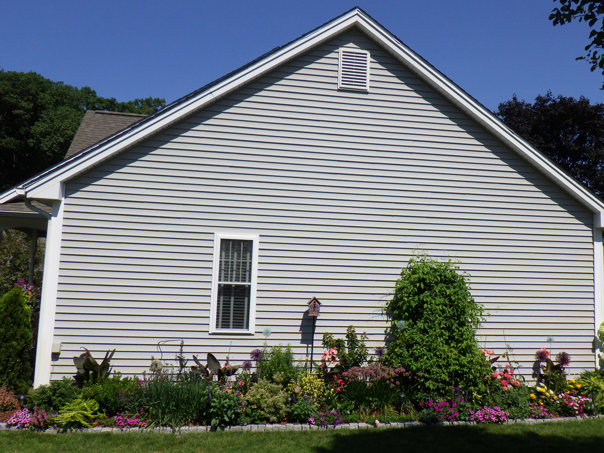 Rich Gambale Garden Design in Hudson, NH. This Hudson, NH client bought the shrubs and annuals she wanted, and I ordered the perennials. We dug out the grass and laid a yard of soil/compost mix. After 4 hours it was magical!!! Garden Design in Hudson, NH Photos.