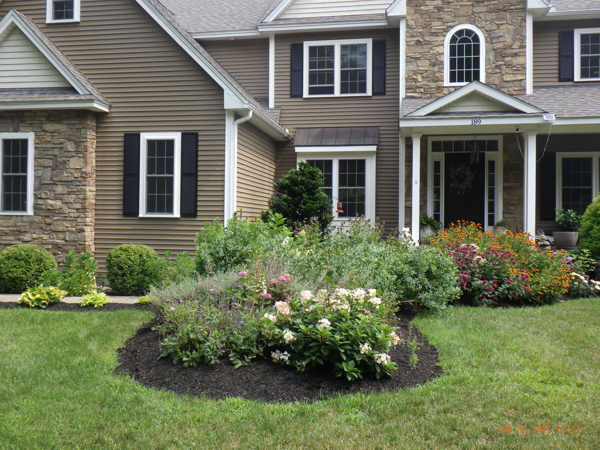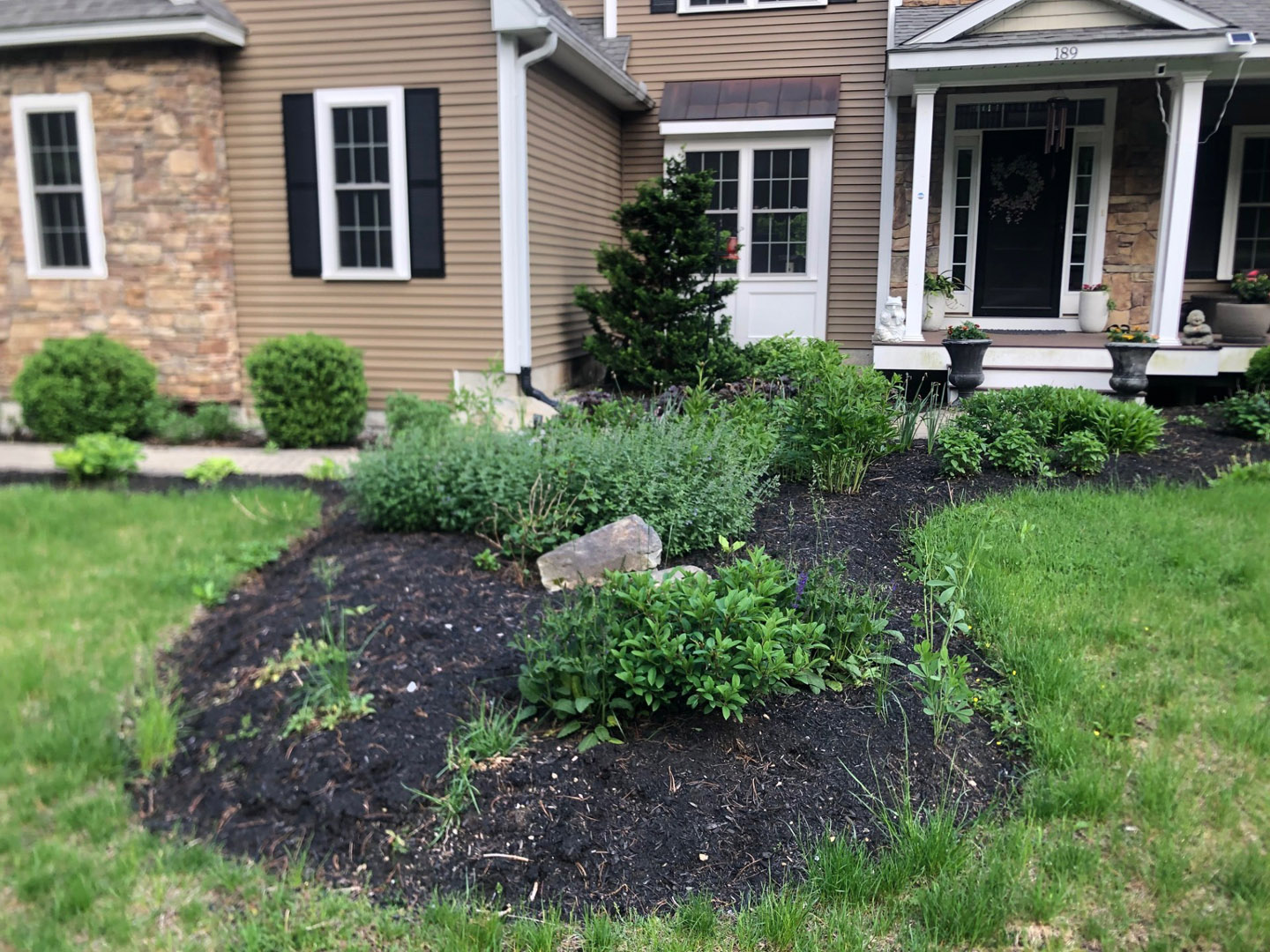 - Garden Transformation: We planted 7 shrubs and 20 perennials, carefully selected to thrive in our climate. To ensure long-term success, we enriched the area with premium Garden Mix Soil (a blend of compost and loam) and finished with a 2–3-inch layer of organic mulch for moisture retention and weed control.