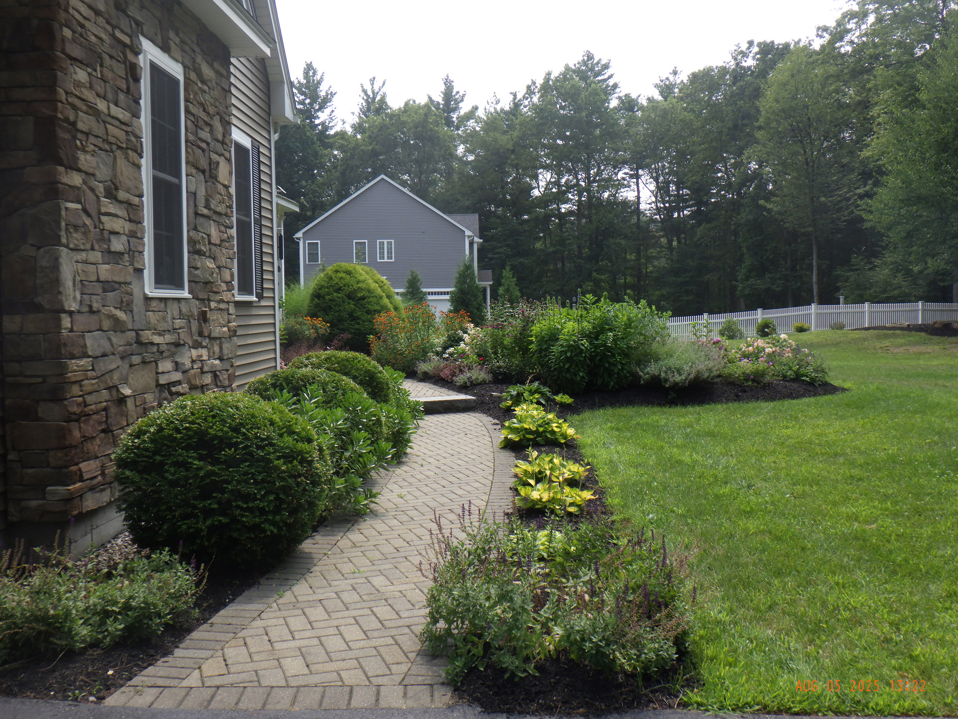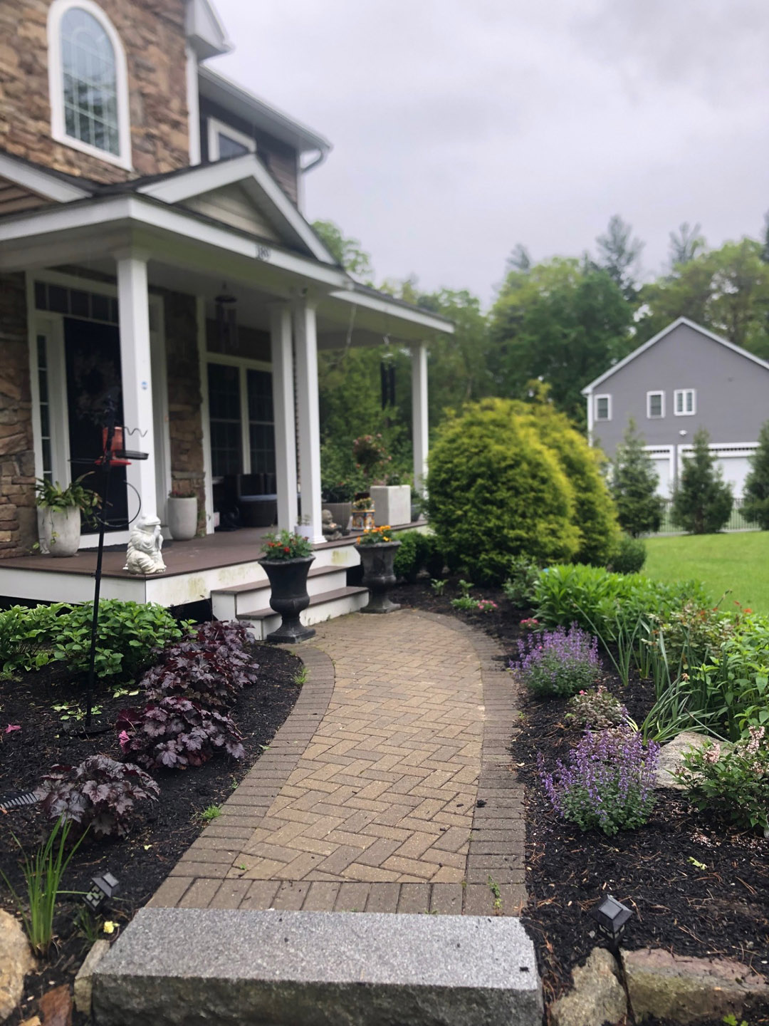 Despite a rainy Saturday in Bolton, MA, the Greenleaf’s Garden Design team powered through to transform a small garden into a vibrant, low-maintenance masterpiece. This project, the second job of the day, showcases our dedication to delivering stunning results, no matter the weather!