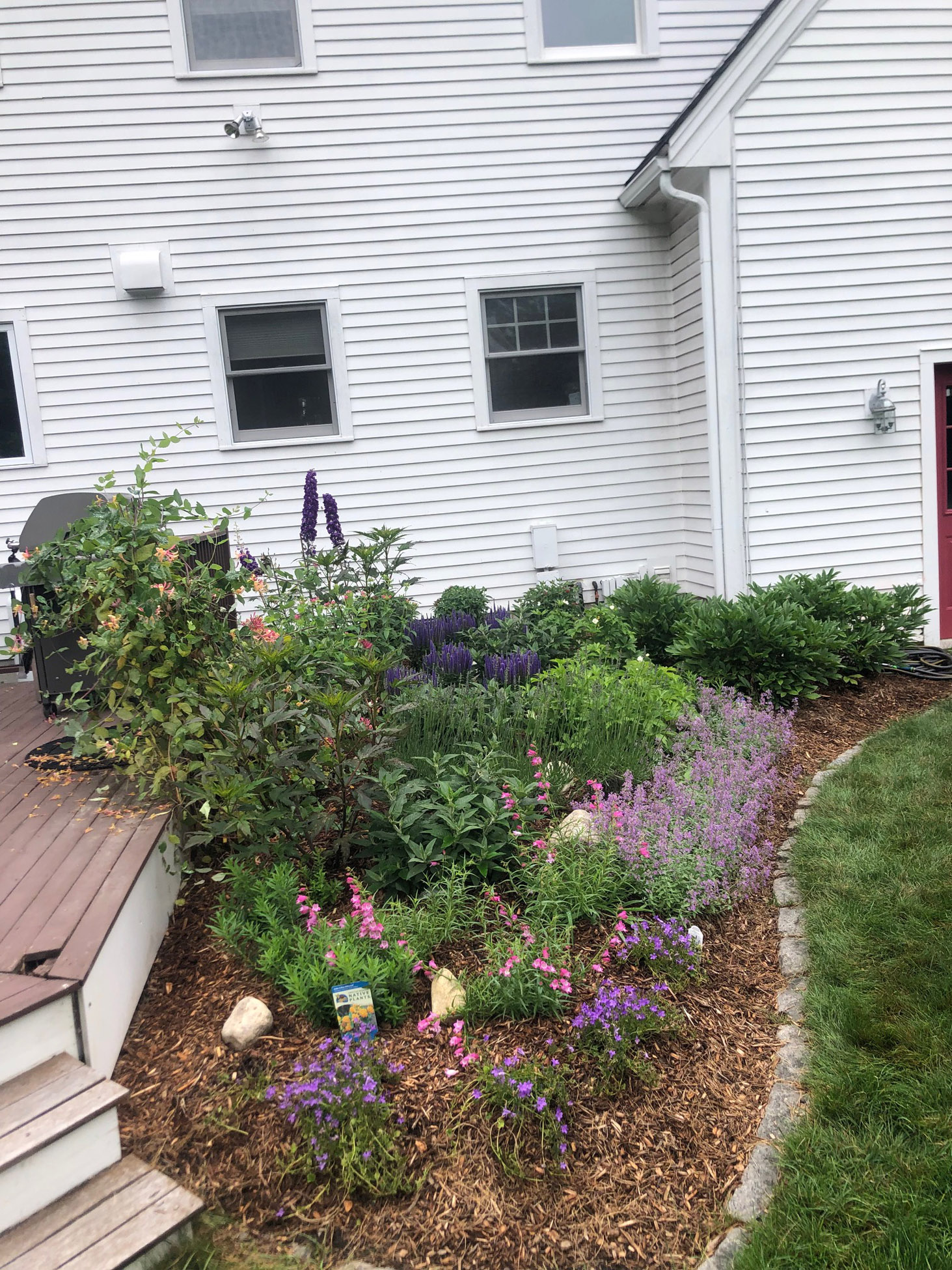 Our team used the Toro Dingo to swiftly remove daylilies and hostas, clearing the way. We then added 10 inches of new soil and compost, creating a deep, nutrient-rich bed ideal for intense growth.