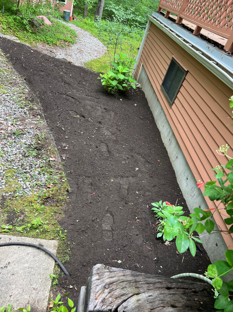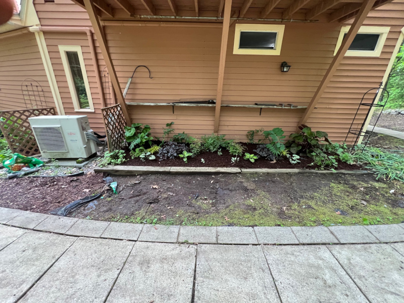 A former client in Merrimack, NH who used my services for tree work called again, this time for revamping of a shade garden. The crew pulled out 7 yards of poor soil and then replaced it with 7 yards of garden soil. Another client of mine had asked me to pull up three beautiful perennials, which I moved up to this garden and the new owner was like “These are fantastic Gifts”. We added another 12 and she’s loving the new perennials which made the garden complete!!! Got a shady corner in your yard that’s begging for some love? Don’t let low light stop you from creating a stunning garden! DM us at Greenleaf’s Garden Design for any of your garden needs.