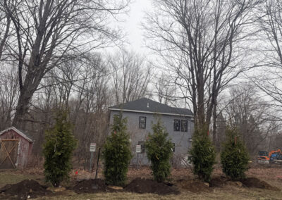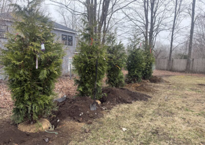 What started as a simple plan quickly turned into something even better. This Pepperell client originally wanted three 8–10 ft. Green Giant Arborvitaes, but just two days before installation, the project grew to five—creating a fuller, more impactful privacy screen.