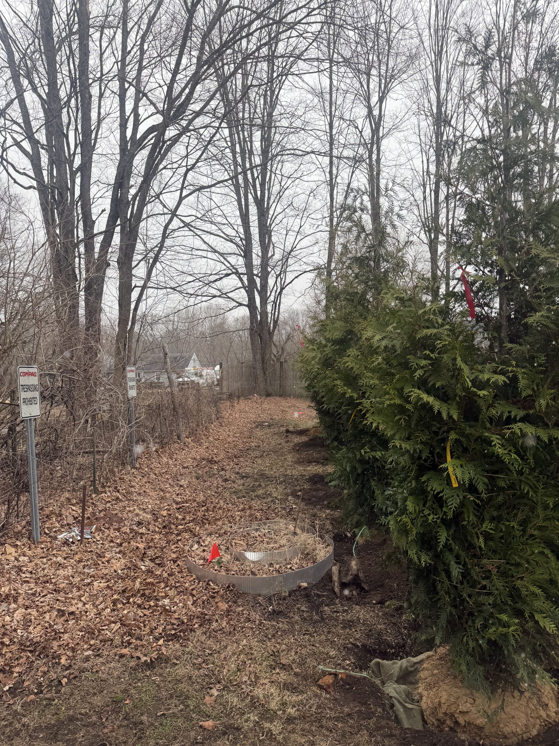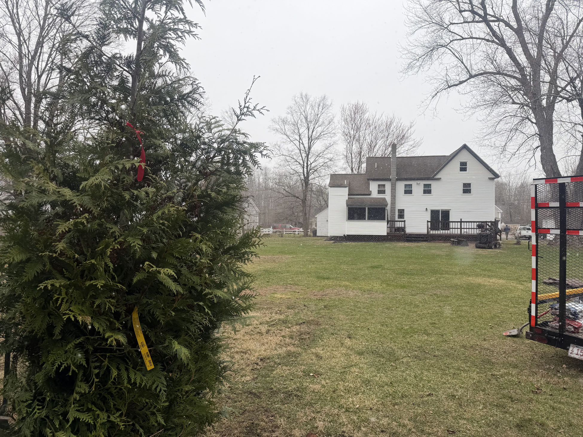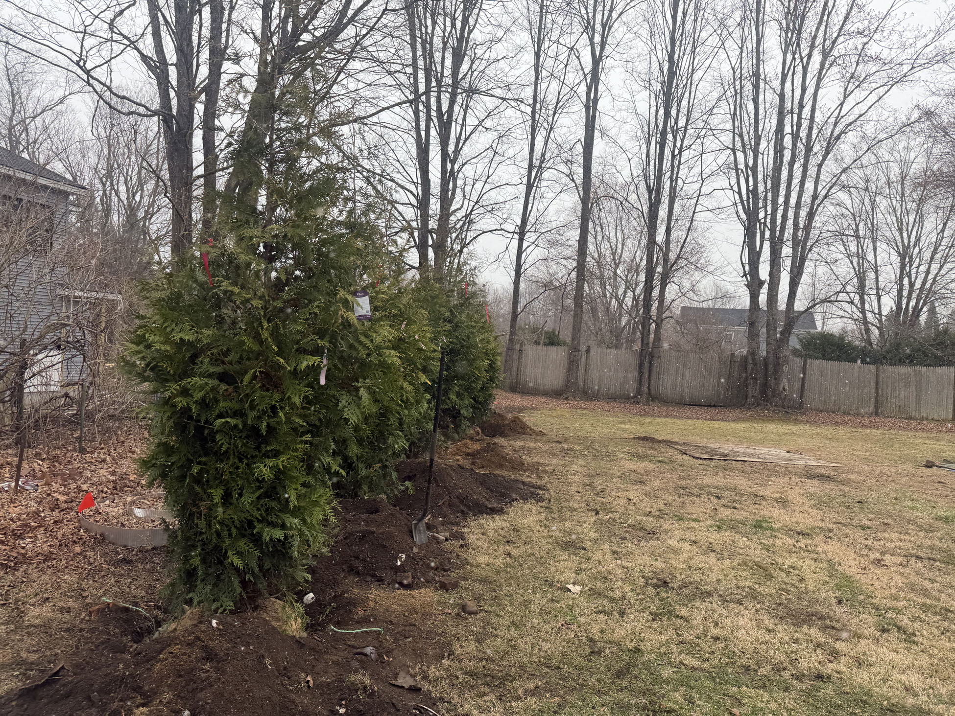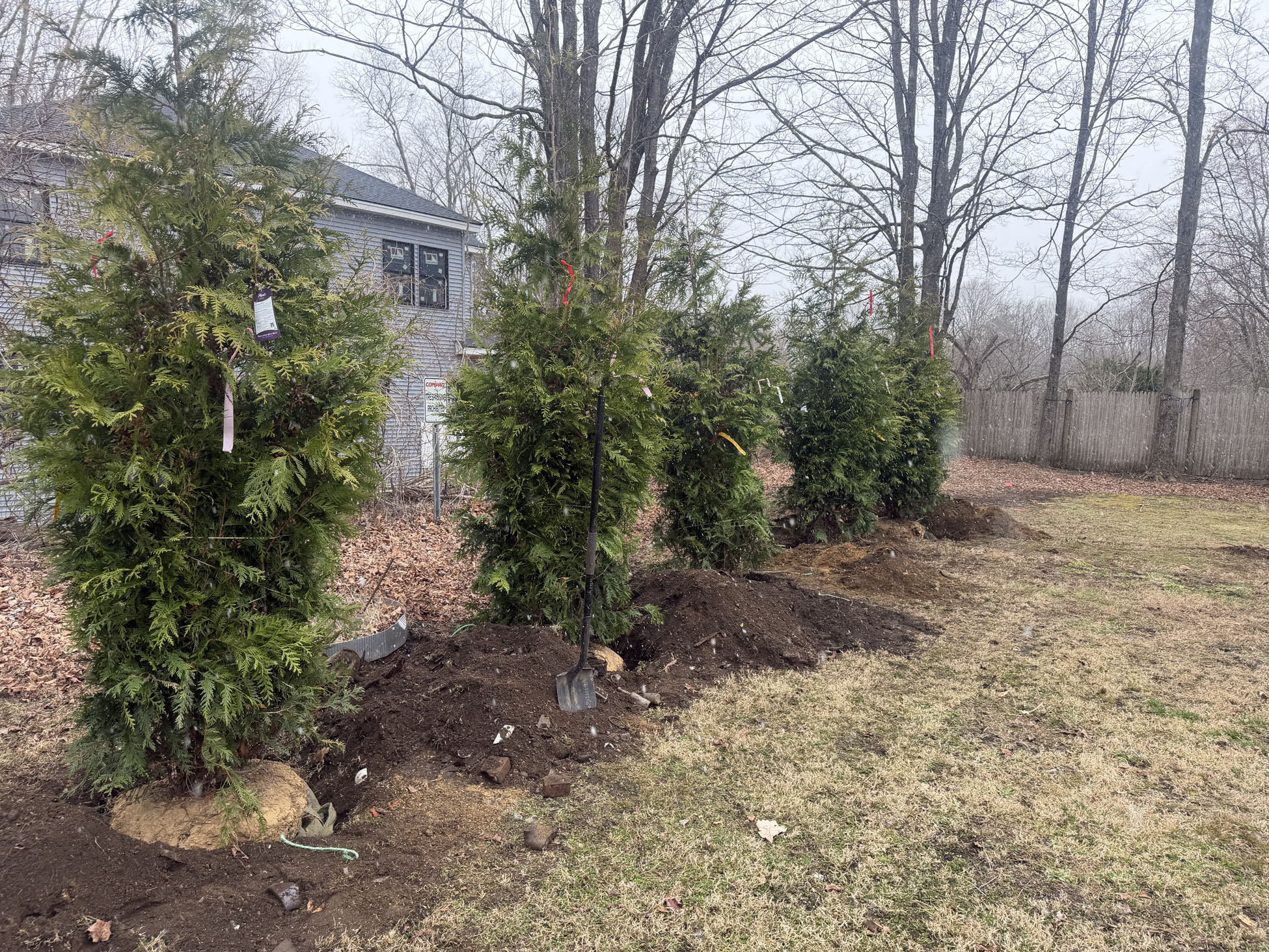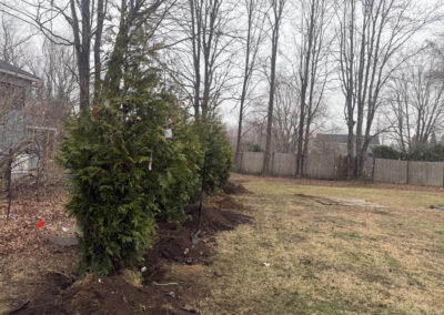 In just four hours, all five arborvitaes were planted and standing strong, instantly transforming the space.