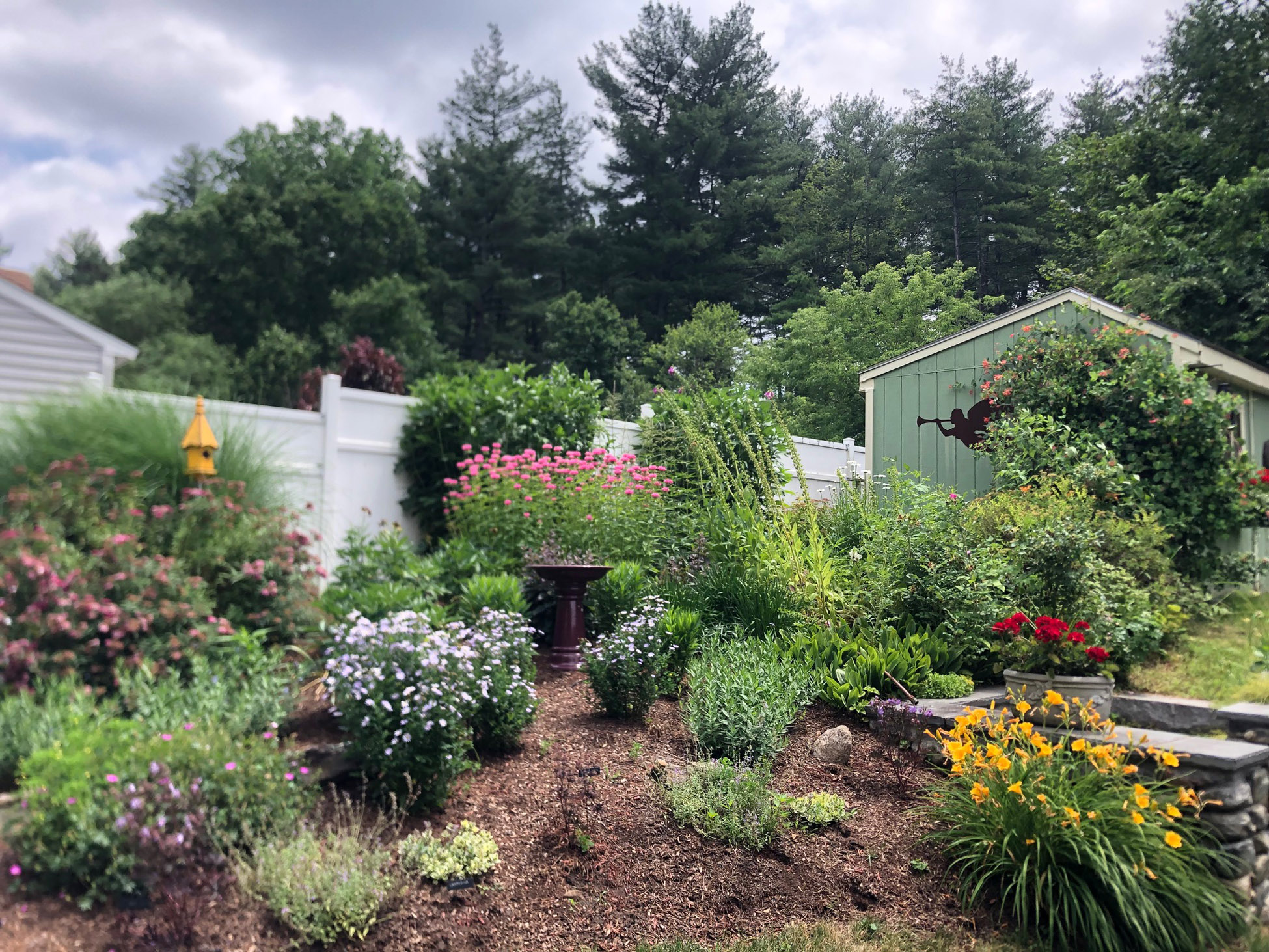 They have some built-in advantages because there is an instant view of the unique presentation of plants: tall narrow evergreens, spiky flowers, flowing ornamental grasses, and rounded shrubs to animate the garden.