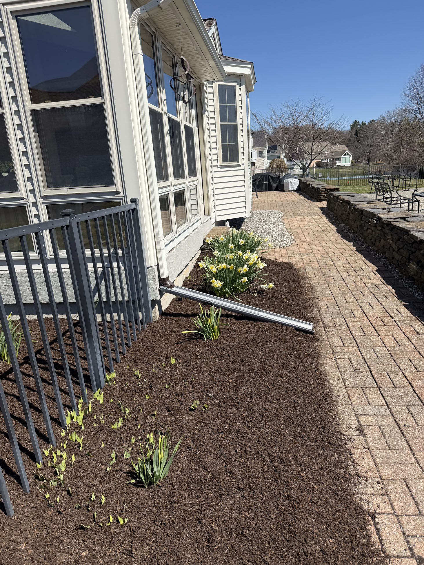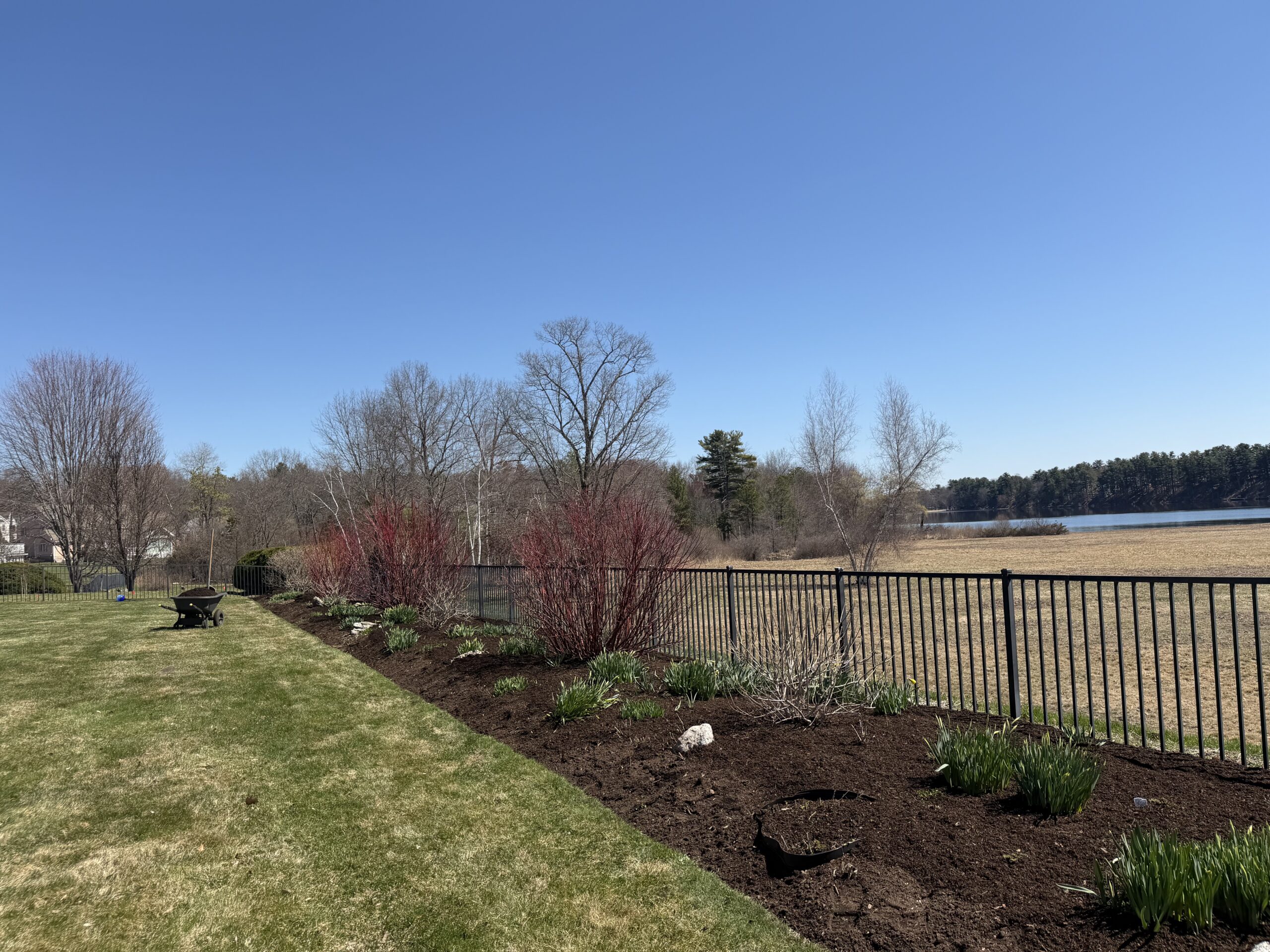 Every spring we return to this Westford property, where a beautiful 125-foot-long perennial bed stretches along the yard, ready for its seasonal refresh.