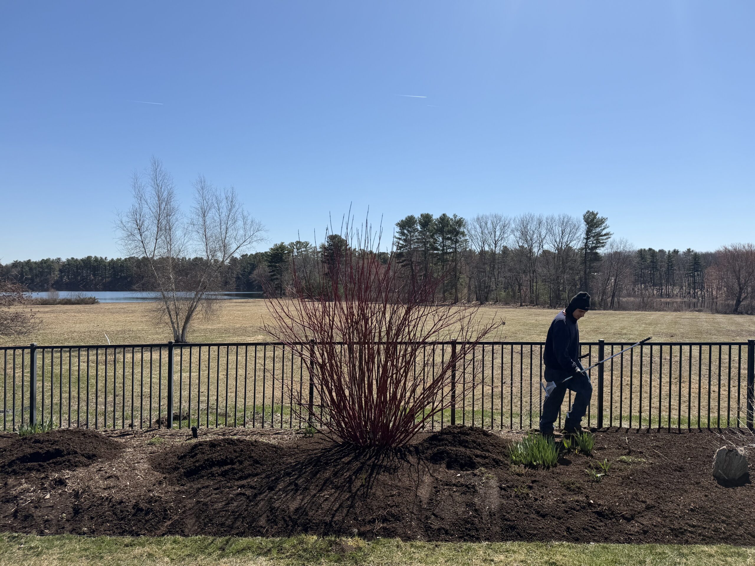 It was a full day’s work, with one dedicated crew member moving 7 yards of material in about eight hours, carefully working it into the landscape and bringing the bed back to life for the season ahead.